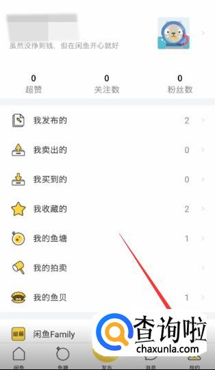 打开咸鱼APP,点击【我的】,如图所示。