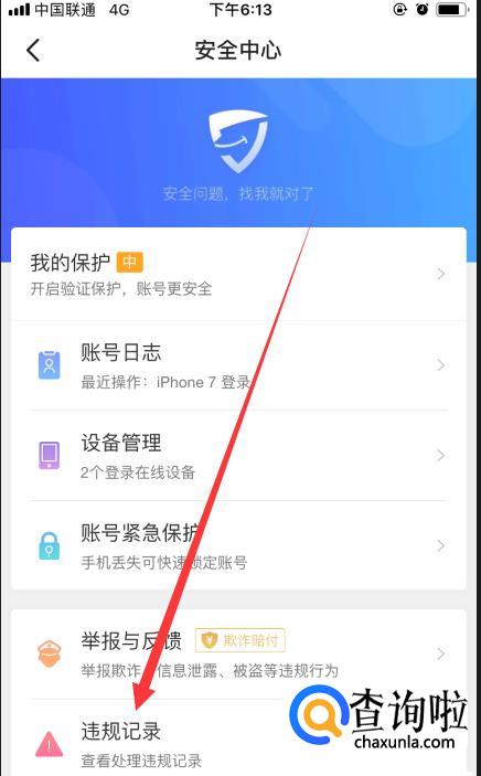 点击下方【违规记录】选项,如图所示。