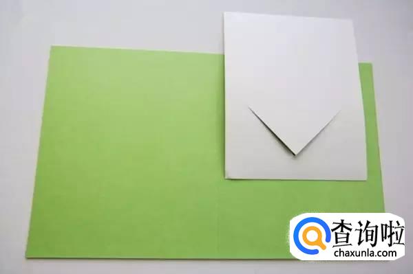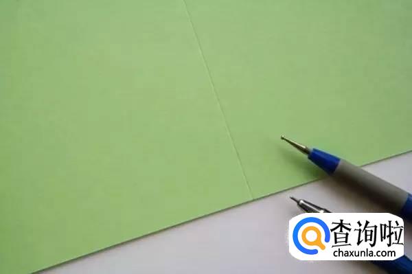 然后,再取一张绿色卡纸对折一下,用来制作贺卡主体。
