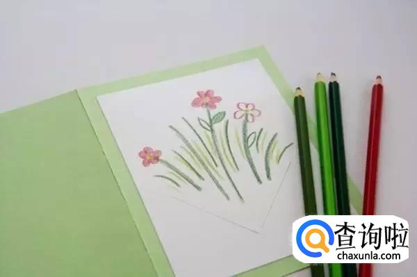 接下来,用彩色铅笔在白卡纸上手绘一些花朵和小草,象征着被老师悉心栽培的学生。
