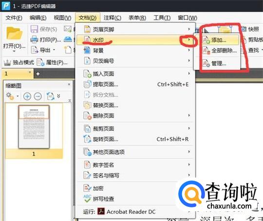 打开需要加水印的PDF文档(一定要是PDF阅读器)