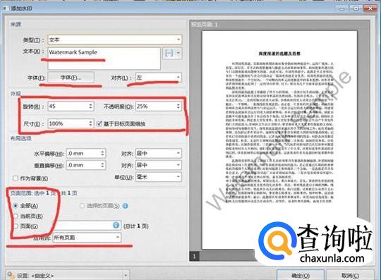 点击“水印”右边的小三角形,会出现关于设置水印的一系列数据