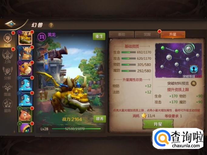 游戏中玩家可以给幻兽进行升星,一旦成功升星,这样也能提升角色的战力。