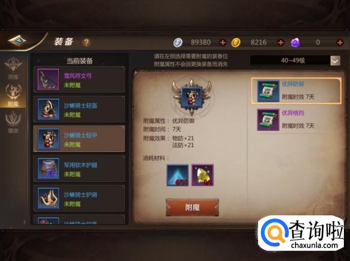 玩家还可以给装备进行附魔,成功给装备附魔后,这样也可以提升角色的战力。