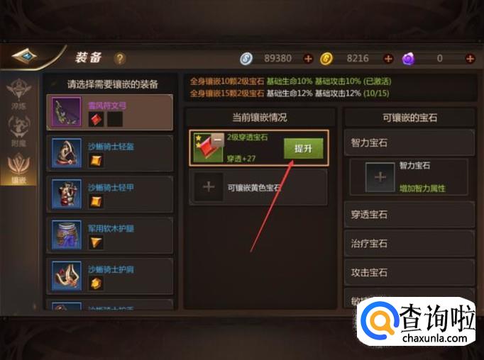 游戏中的装备是可以镶嵌宝石的,镶嵌的宝石等级越高,自然角色的战力就越强了。