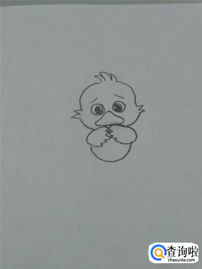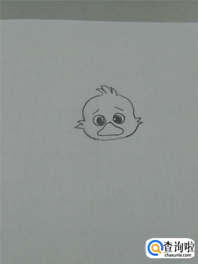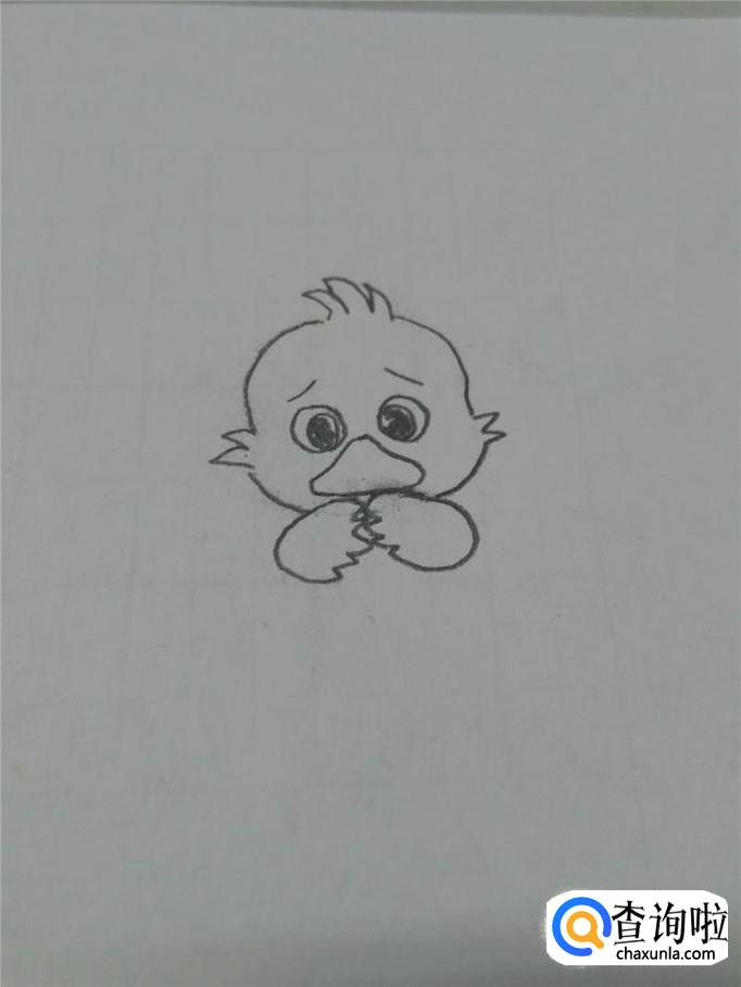 在眼睛的下面,画一个三角形,但是,三角形的三个角要画成圆弧,表示丑小鸭又宽又扁的嘴巴。