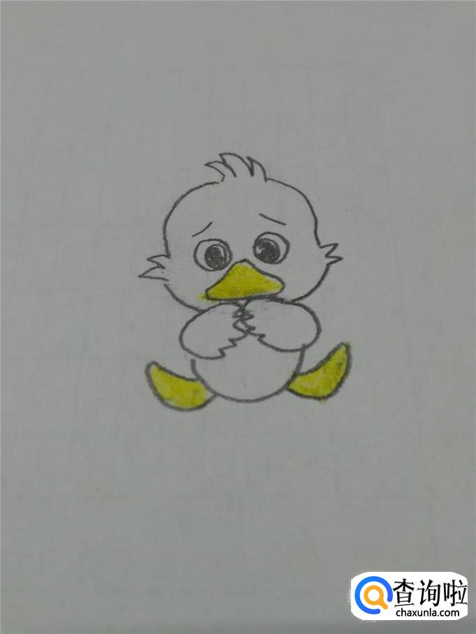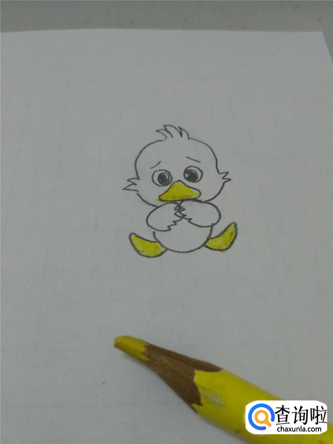 最后,用黄笔把丑小鸭的嘴和脚都涂成黄色,丑小鸭就画完了。