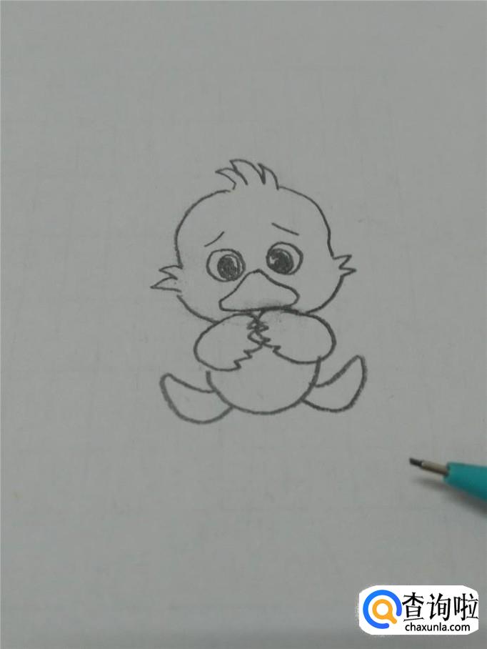 在两只翅膀下面再画一个半圆,表示丑小鸭的肚子。