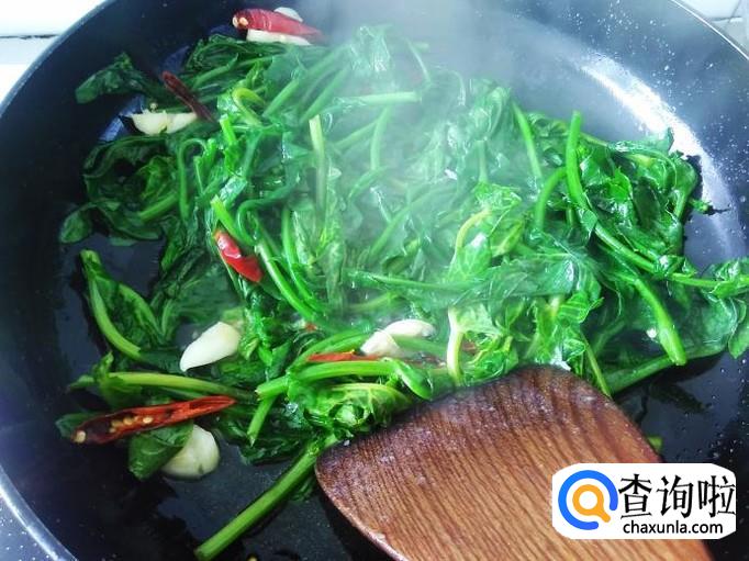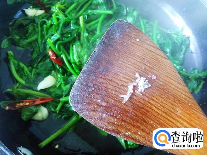 然后下几粒味精翻炒均匀,熄火。非常美味的蒜爆一点红菜就做好了。