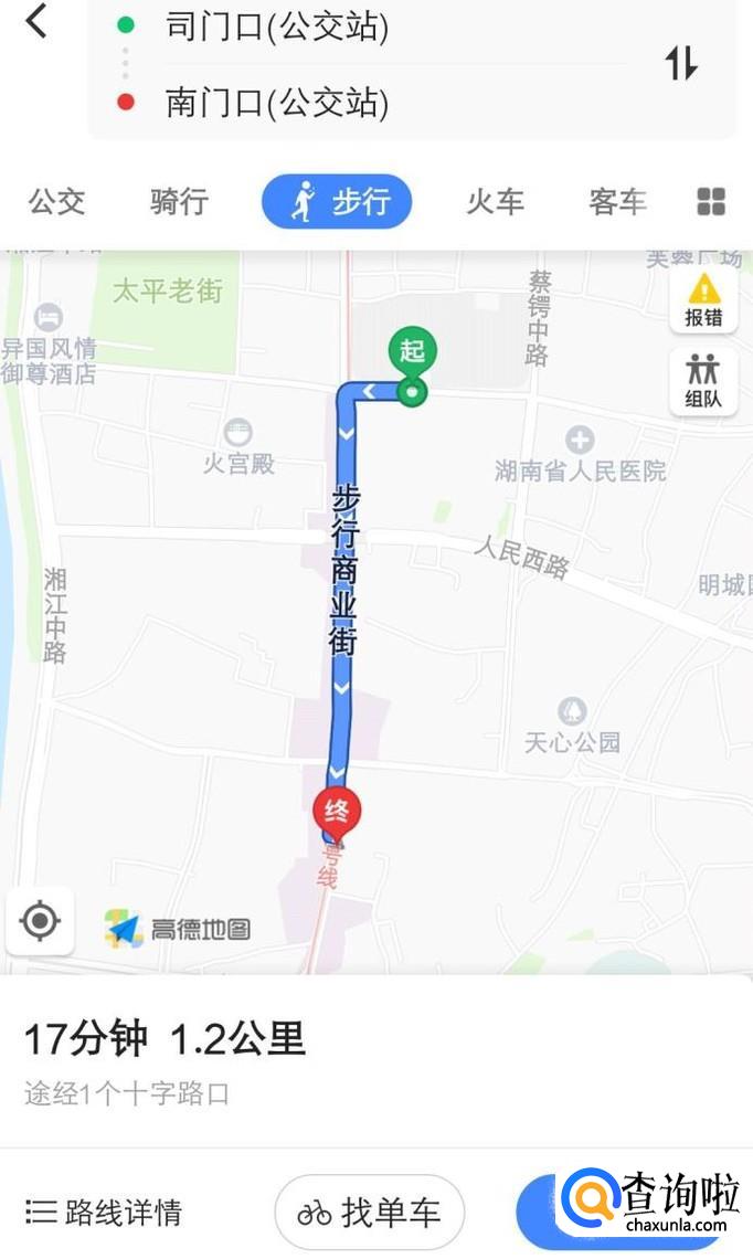 在输入起始地后,最初选择的并不是步行导航,但是我们可以看到中间有不同的出行方式可以进行选择。
