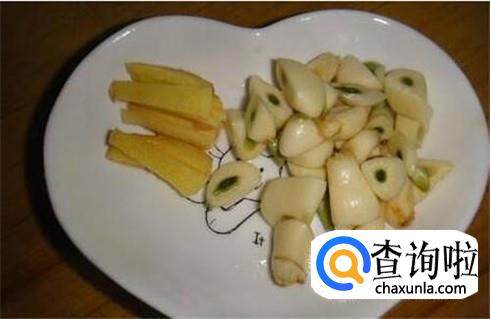 准备好适量的姜蒜,姜切成姜片,蒜头切碎。