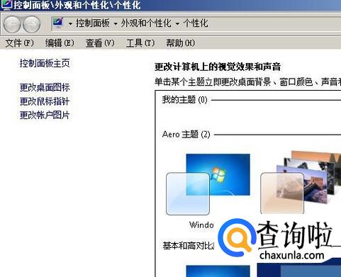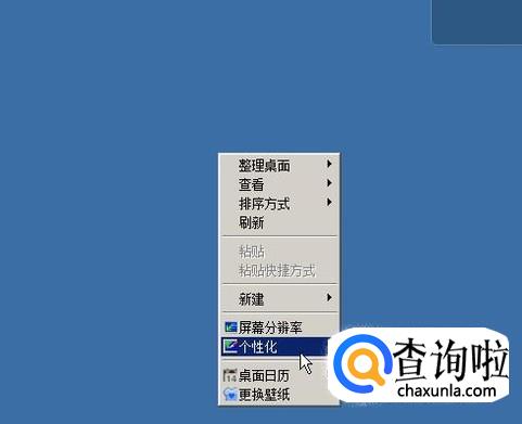 鼠标放在桌面空白位置上,右击,弹出菜单再点:个性化
