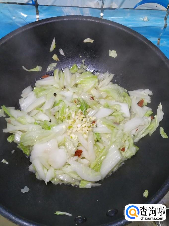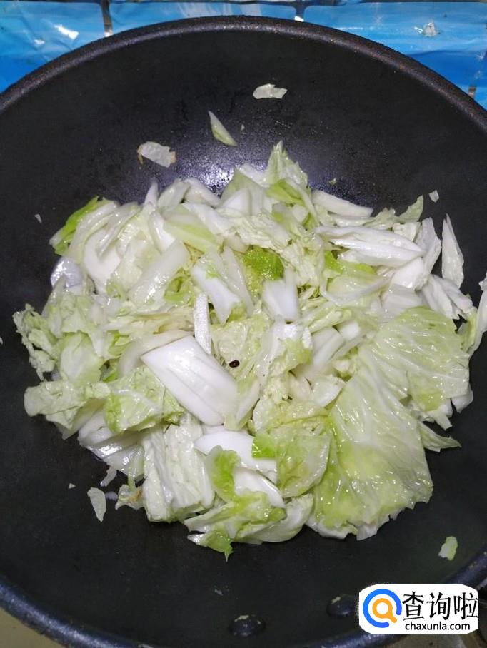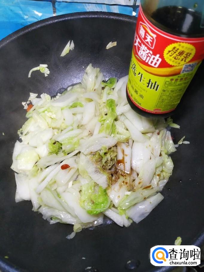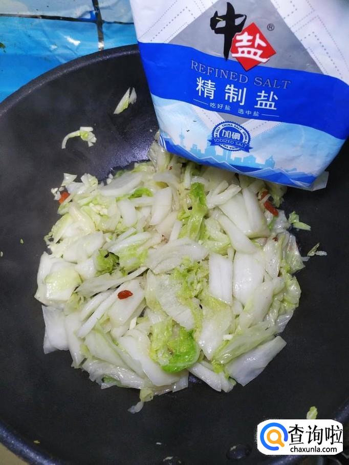 待大白菜炒软之后,加入适量盐和鸡精,搅拌均匀。
