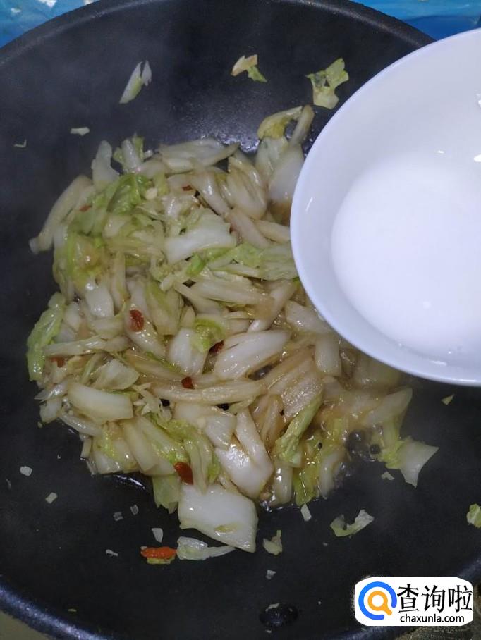 准备适量水淀粉,倒入锅中,勾芡一下,熬至汤汁浓稠。