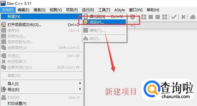 首先点击文件菜单,然后选择新建下面的项目,如下图所示