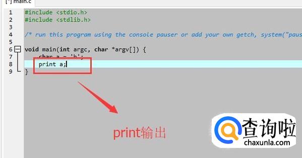 然后我们在main函数中声明一个字符,如下图所示