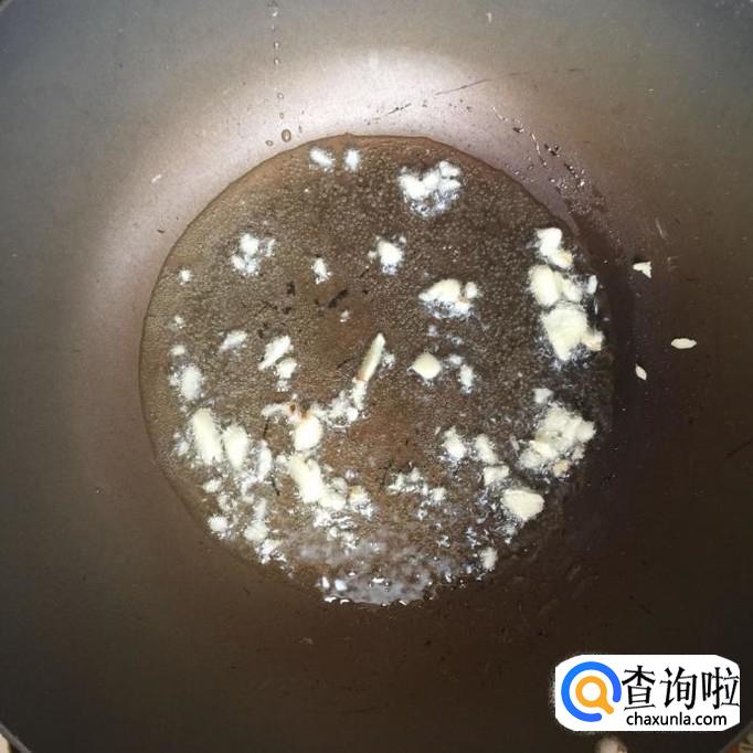 首先将蒜头切成蒜蓉,倒入油锅中爆香。