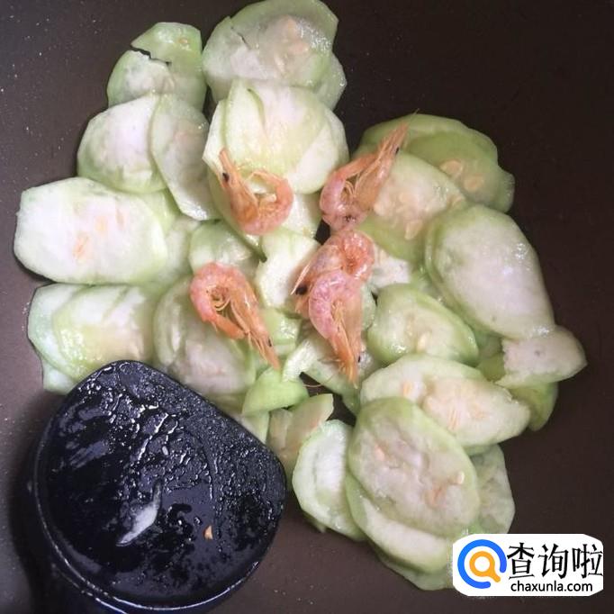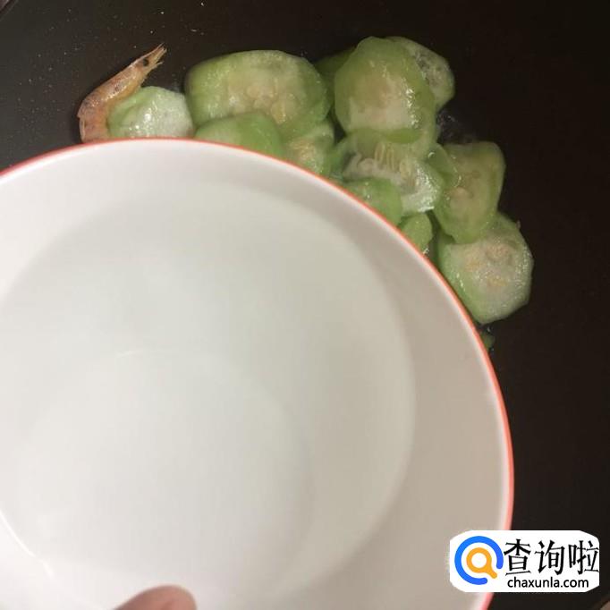 然后往锅中加入五颗明虾干并加入适量的清水,如下图所示。