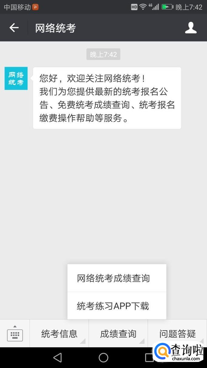 然后点击成绩查询,里面有个网络统考成绩查询;