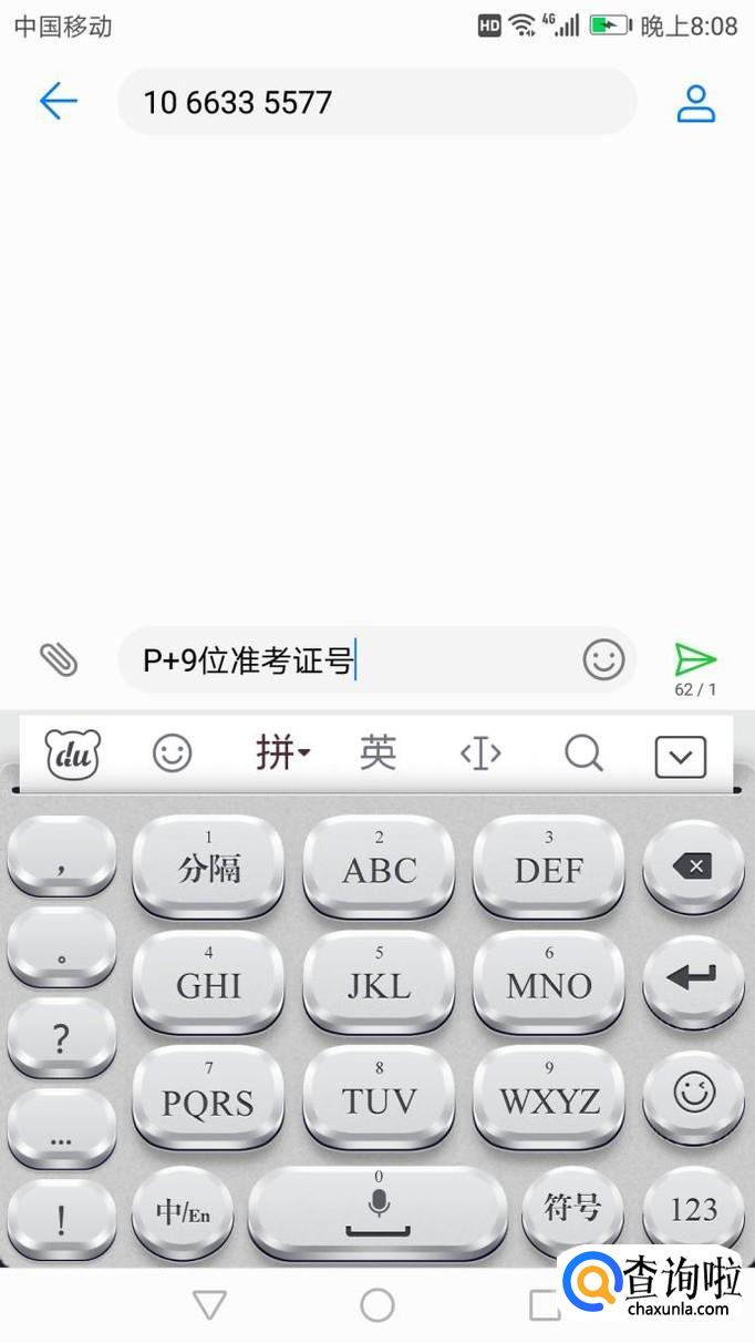 另外也可以通过短信的方式查询,发送“P+准考证号”到相应的1066335577,选择科目就行了。