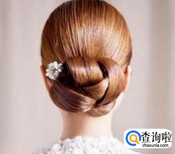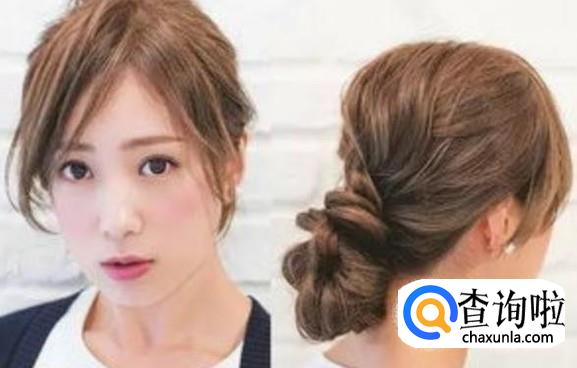 接下来,年会的晚礼服我们可以把长卷发大部分梳理,盘成斜刘海低发髻,这样让人看起来很成熟优雅,这样的发型在年会中也会很显眼哦!
