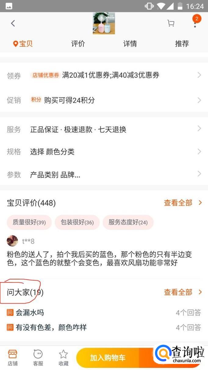 进去后,最底端有输入的文本框,可以问自己想要问的问题,等待其他买家回答