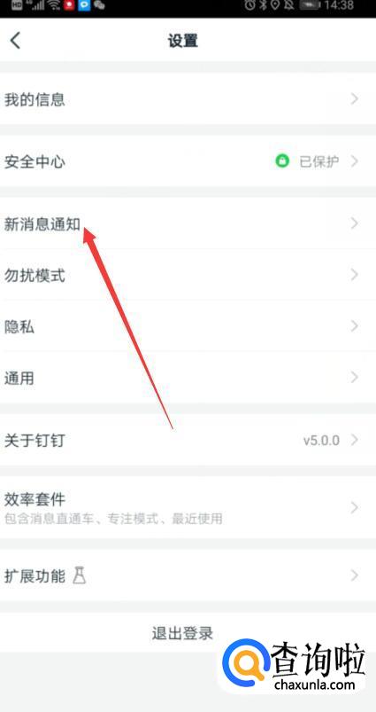 在设置页面,点击新消息通知按钮。
