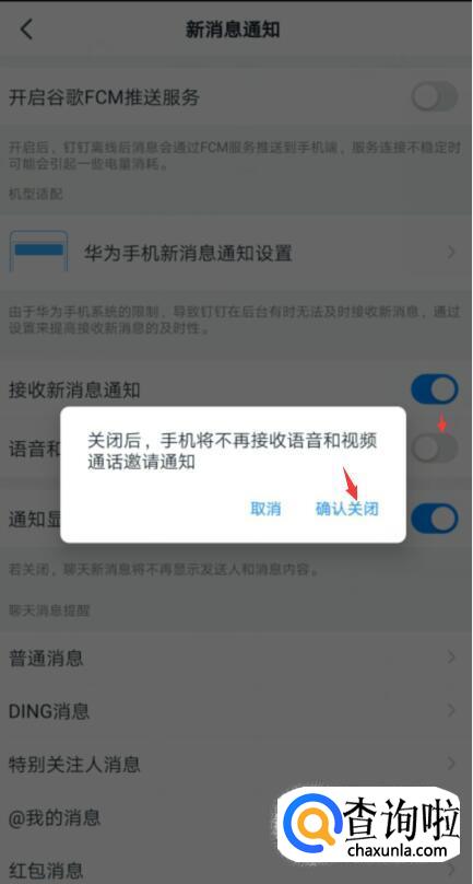 钉钉如何关闭语音和视频通话通知?