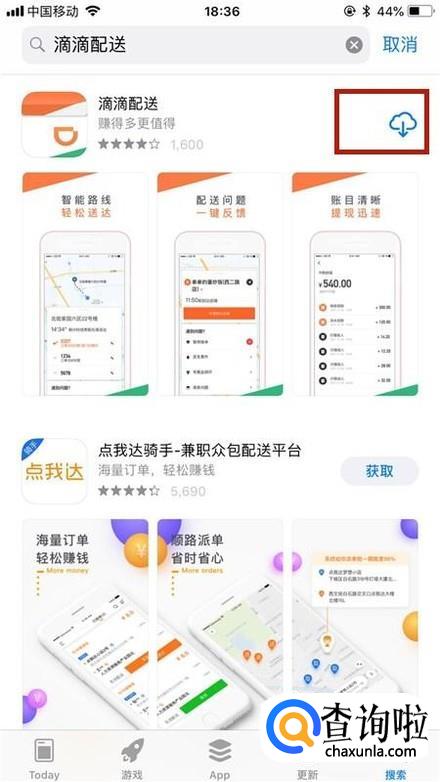 然后点击滴滴配送右侧的下载图标,等待下载完成就可以了。
