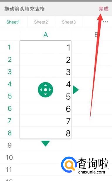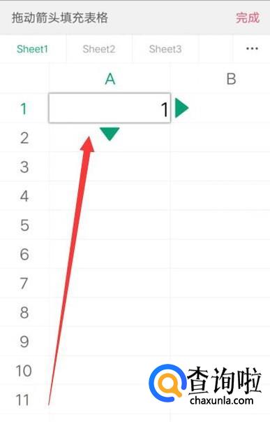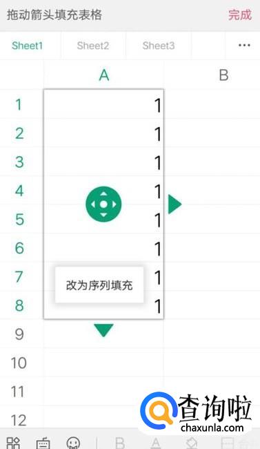 按住输入数字的单元格,即可看到向右和向下各有一个绿色大箭头,如图所示。