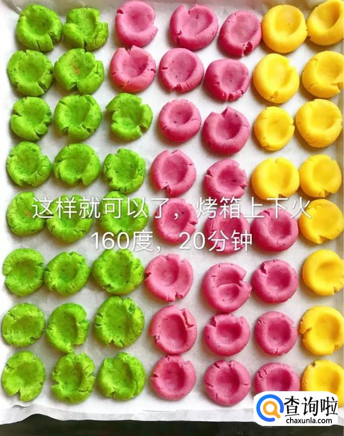 然后用大拇指按压一下,放入烤箱,上下火160°烤20分钟就可以了。