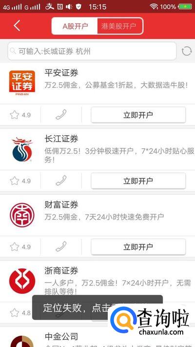 打开app,我们在首页就可以看到“股票开户”按钮,点击进入。我们需要选择券商,最好是选择一家在本地有营业部的券商,那样万一需要办业务也方便。