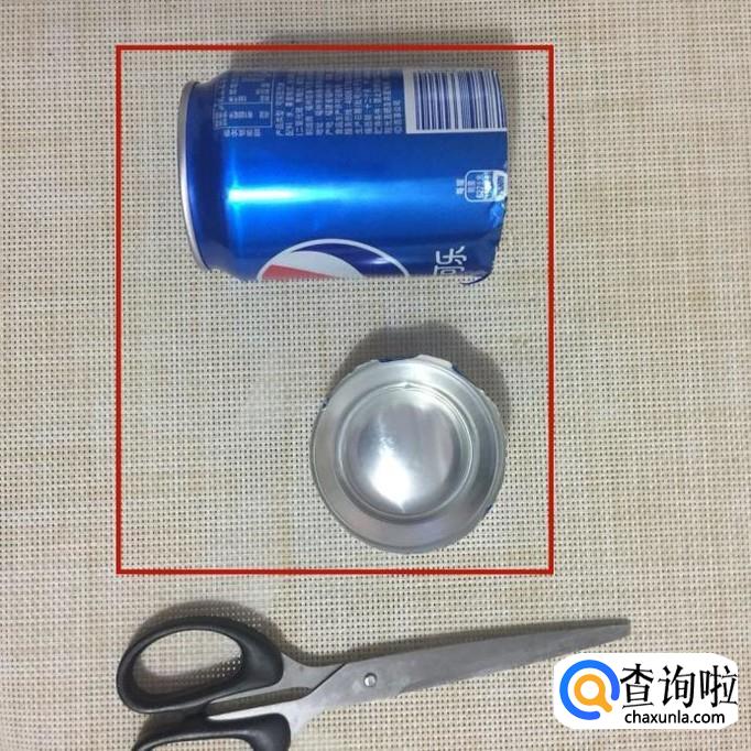 首先我们要准备一把剪刀和一个易拉罐,如下图所示。