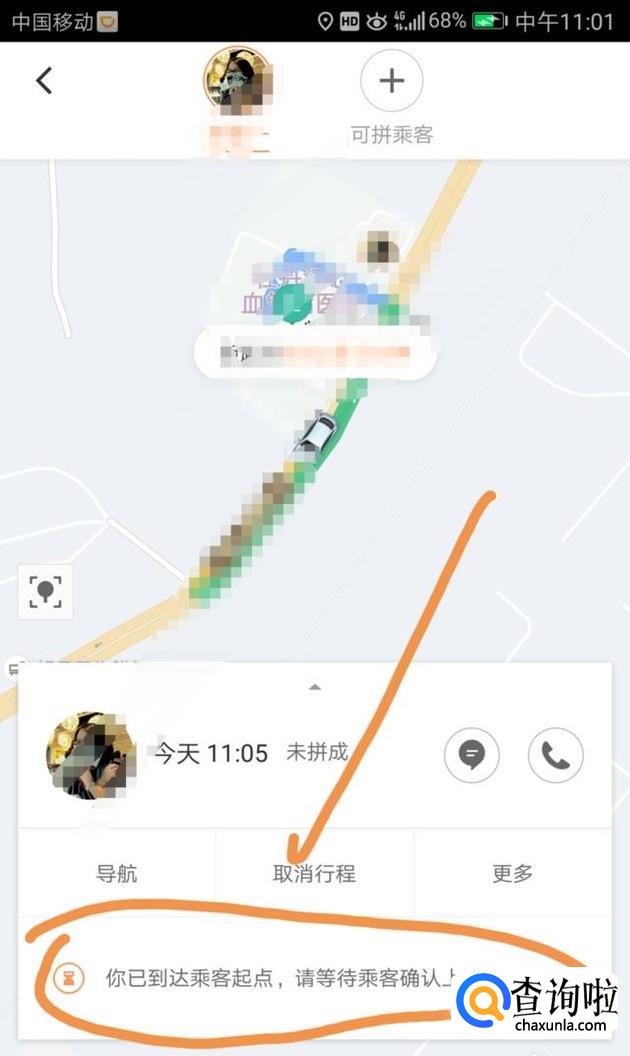 点击“导航”到达乘客起点,然后等待乘客上车付费之后就可以出发了,结束之后系统将把佣金打到余额上面。