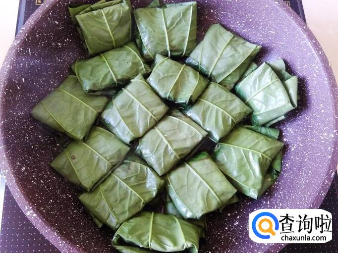把假蒌包摆到锅里,收口那面先向锅底用小火煎。