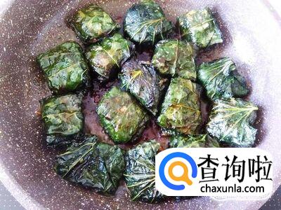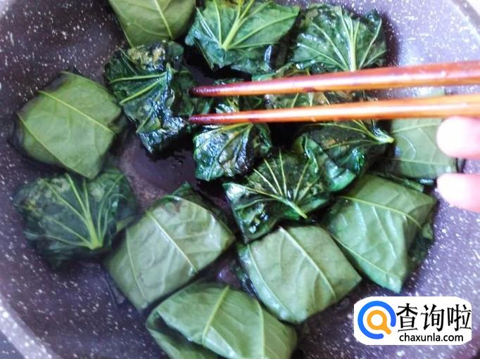 然后不停地翻转假蒌包,煎7分钟左右,把假蒌包煎至焦黄色就可以了。