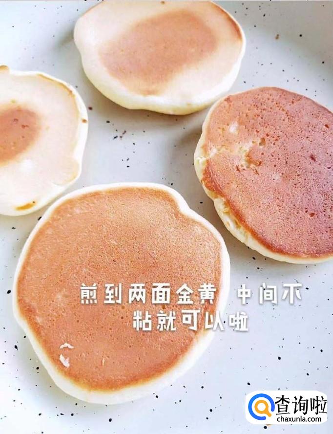 然后把松饼煎到两面金黄就可以出锅了。