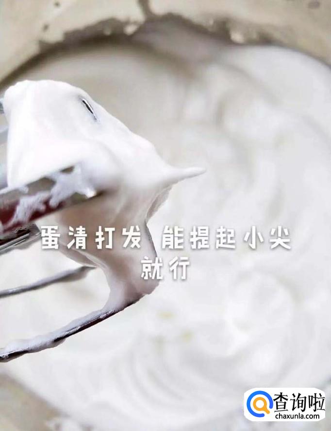 接着把蛋清打发到能够提起小尖就可以了,如下图所示。