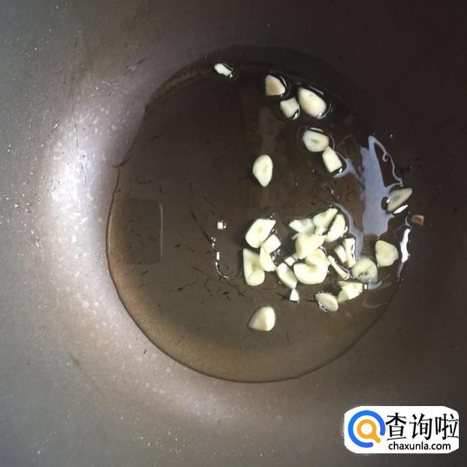 首先将蒜头切成蒜蓉,倒入油锅中爆香,如下图所示。