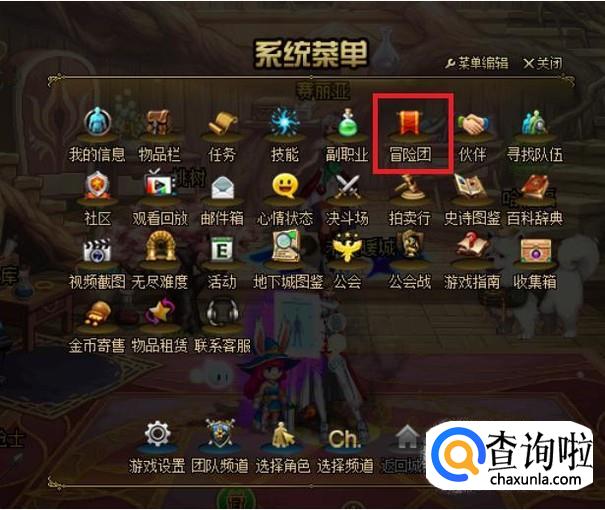 首先,玩家可以通过蓝条右上角的冒险团图标或者系统菜单中的冒险团图标进入冒险团界面。