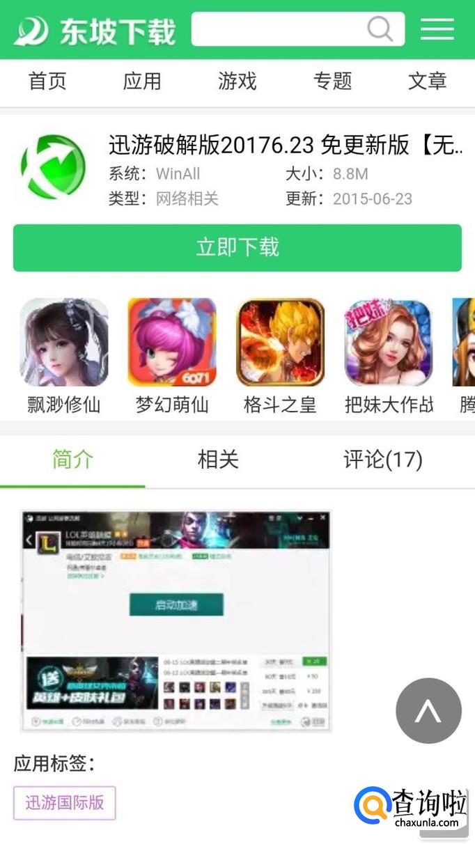 搜索以后我们就可以找到,找到迅游破解版然后点击打开。
