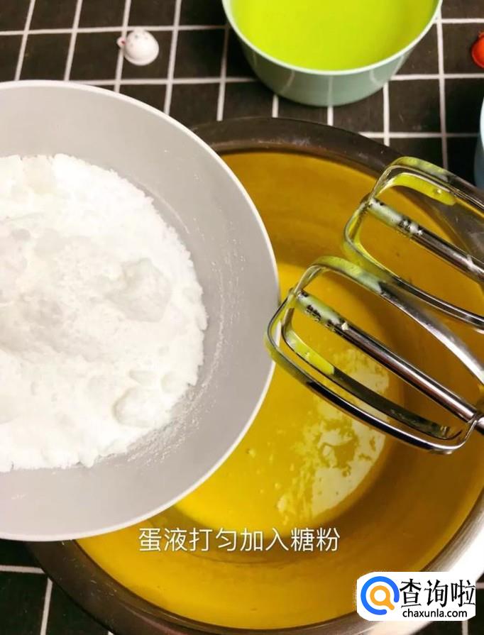 然后将蛋液搅拌均匀,加入糖粉,如下图所示。