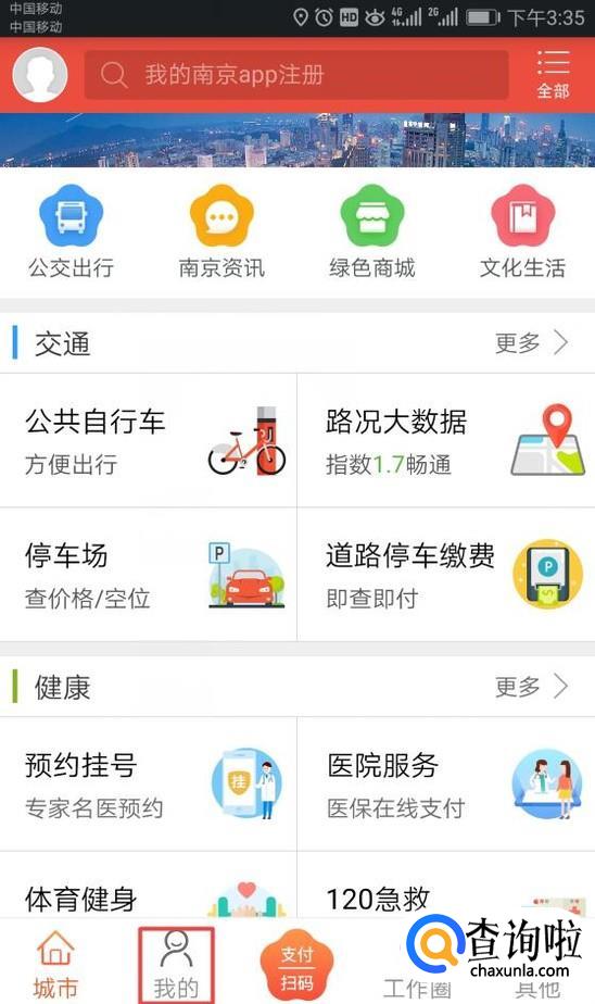 首先,我们在我们的手机上下载一个我的南京,然后我们注册一下,之后我们点击我的南京;