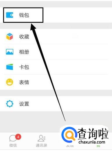 打开手机微信,进入“我的”页面,点击“钱包”,进入下一界面。