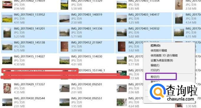 我们选择一部分照片,右击选择剪切;