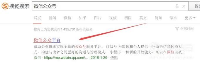 在浏览器中搜索”微信公众号“,然后点击进入官网