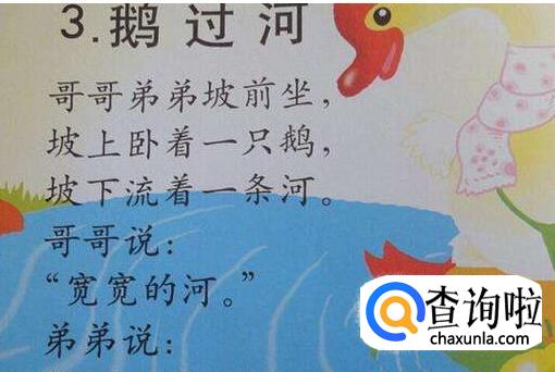 哥哥说:宽宽的河,弟弟说:白白的鹅。