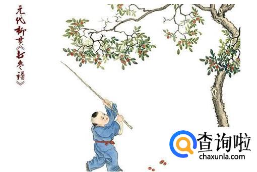 一树枣出东门,过大桥,大桥底下一树枣儿,拿着竿子去打枣,青的多,红的少。