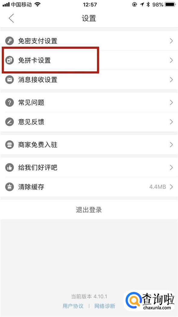 然后点击免拼卡设置,如下图所示。