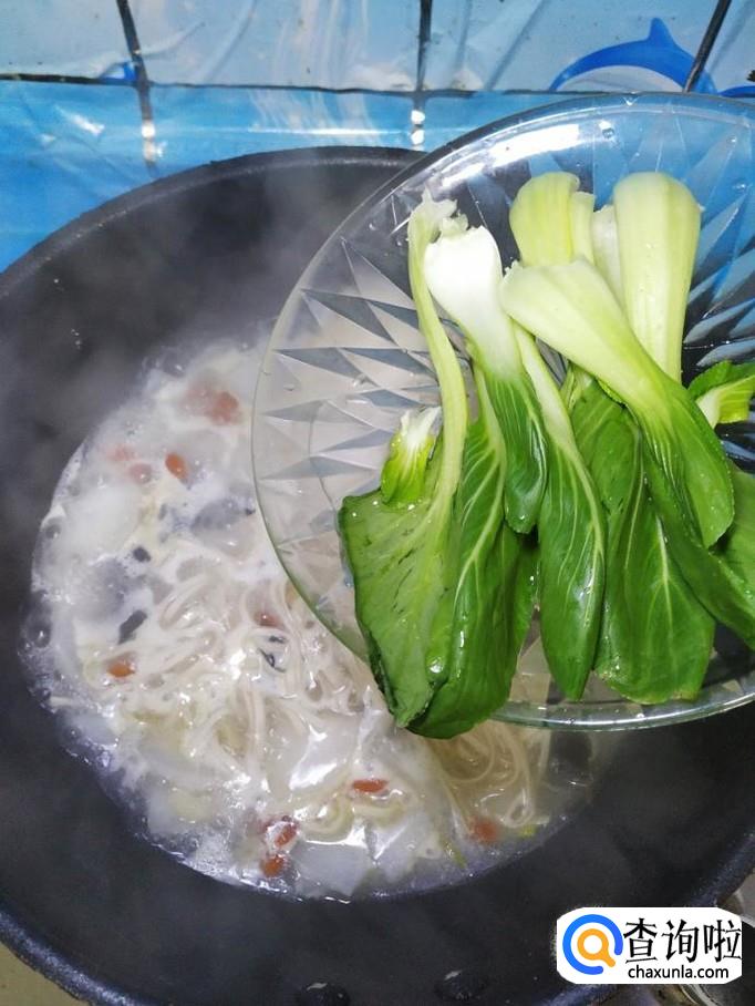 准备适量青菜,洗净后,掰开,放入锅中,和面条一起煮熟,煮好之后,出锅装碗,可以滴几滴香油。